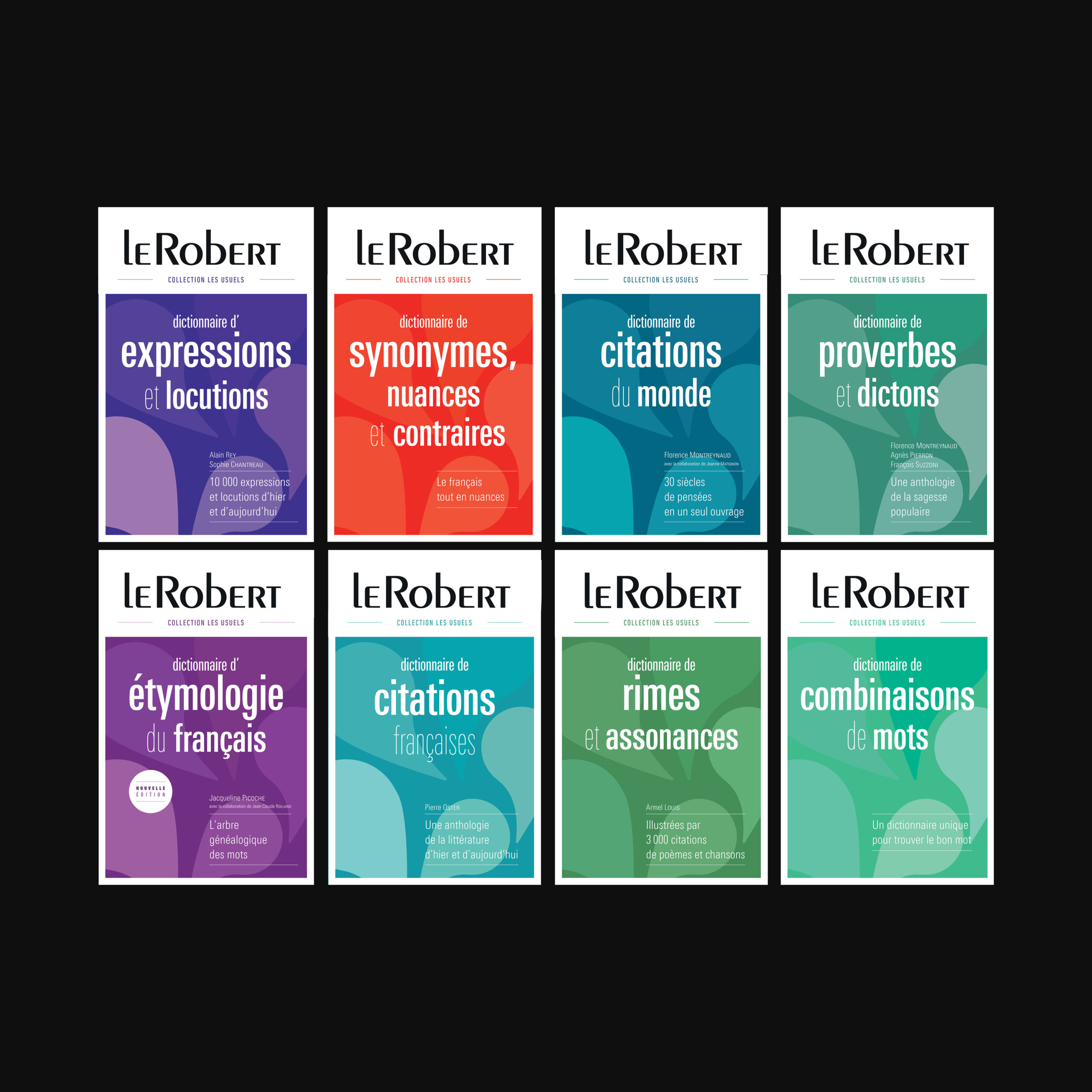 For Les Usuels, a reference collection of dictionaries published by Le Robert, the project focused on the redesign of the complete series of covers.